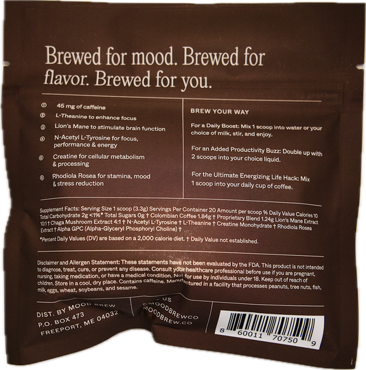 Whatever it is you’re looking to get out of your daily cup of coffee, we make it happen… and then some. Our enhanced blend is packed with powerful adaptogens and nootropics for a mellow mood boost and focus you can feel. One cup is all it takes (but refills never hurt).